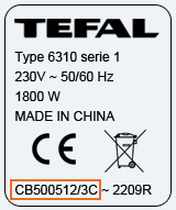 Mais avant d’effectuer votre achat, il est important de chercher d’abord le modèle et la référence de votre bouilloire Tefal que vous pouvez trouver directement sur l'appareil électroménager. Ils se trouvent sur une étiquette qui comporte le code produit, la référence et le numéro de série de votre bouilloire.