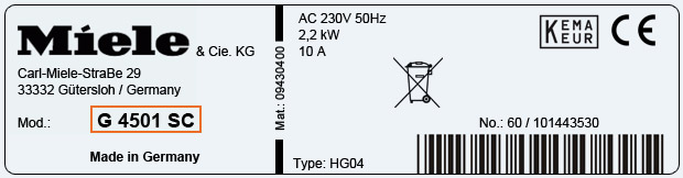 Cherchez la référence qui se trouve sous l’appellation Modèle ou Model, Ref, Type, Code, PN, PNR, E-Nr…