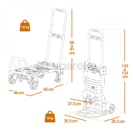 Nom Linxor - Diable, chariot 2 en 1 pliable 4 roues - Charge 137 kg |
