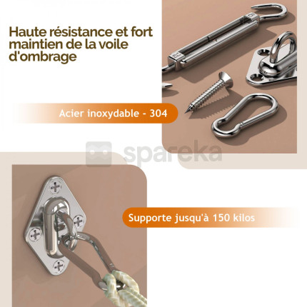 NomLinxor - Kit de fixation en acier inoxydable pour voile d'ombrage |