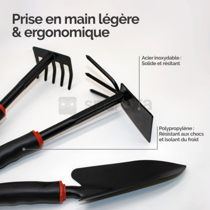 Nom Linxor - Lot de 3 outils de jardinage à main en acier inoxydable - Noir |