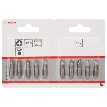 NomBosch Outillages 10 Pièces Jeu de Embouts de Vissage Extra Dure pour Vis Pozidriv, PZ3 Epaisseur, 25mm Longueur |