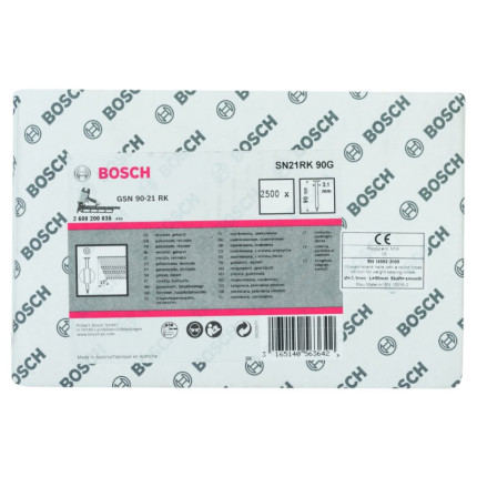 NomBosch Outillages Clous en Bande à Tête Ronde 21° SN21RK 90G, 7mm Tête, 3.1mm x 90mm, Lot de 2500 |