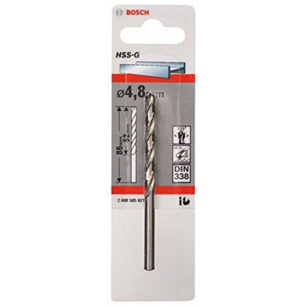 Nom Bosch Outillages 2608585921 Foret à métaux rectifiés HSS-G DIN 338 4,8 x 52 x 86 mm |