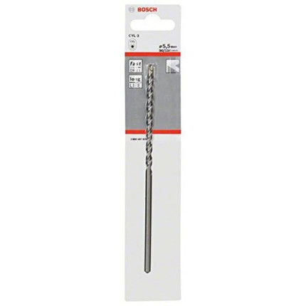 NomBosch Professional 1x Jeu de foret à béton CYL-3 (pour béton, Ø 5,5 x 90 x 150 mm, accessoires perceuse à percussion) |