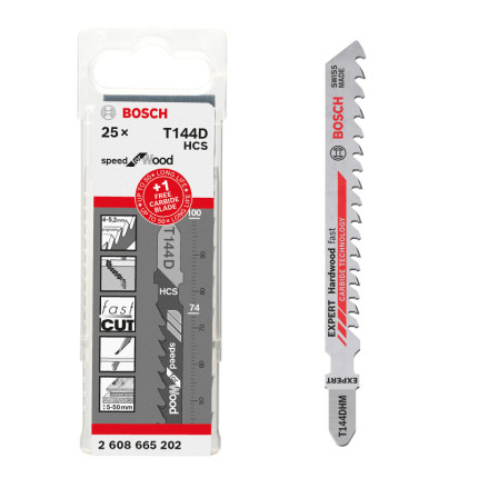 NomBosch Professional Lames de scie sauteuse 25x T 144 D + 1x Expert ‘Hardwood Fast’ T 144 DHM (pour Bois, Bois dur, Accessoire Scie sauteuse) |